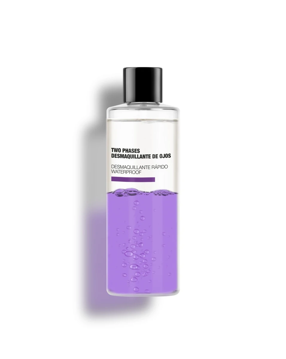 Desmaquillante bifásico de ojos y labios, en formato loción. Su fórmula le aporta un gran poder de arrastre, favoreciendo el desmaquillado rápido. Apto para todo tipo de pieles y maquillaje, especialmente los waterproof. No apto para usuarios de extensiones de pestañas o pestañas postizas, ya que la fase oleosa podría facilitar el desprendimiento del adhesivo utilizado.