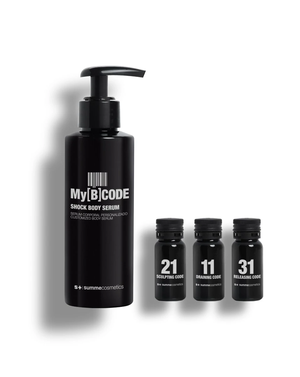 Sérum corporal personalizable. Específicamente creado para combatir y prevenir cada uno de los problemas corporales que más nos preocupan, de forma totalmente customizada. Consta de un sérum base que se enriquece con tres concentrados corporales (códigos), iguales o distintos. Estos sumarán un extra de principios activos en función de las necesidades de cada persona, época del año y área del cuerpo.